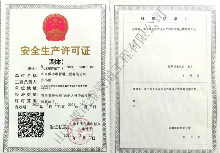 管道非開挖修復工程服務企業資質證書