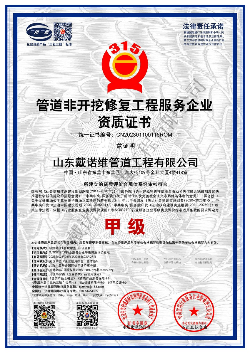 山東戴諾維管道工程有限公司專業從事管道非開挖內襯修復,管道內襯PE管修復,管道內襯不銹鋼修復等,服務質量好