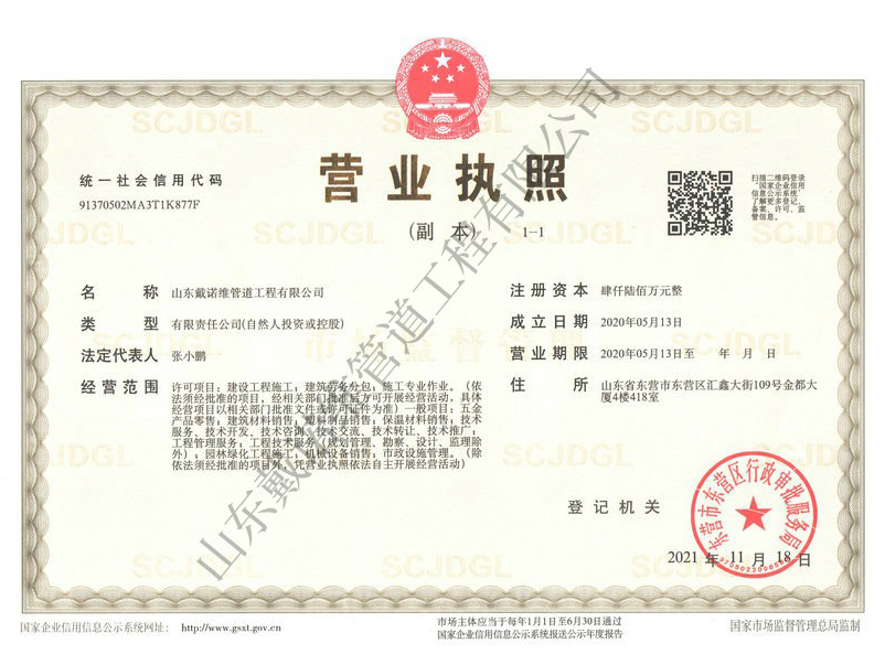 管道非開挖修復(fù)工程服務(wù)企業(yè)資質(zhì)證書