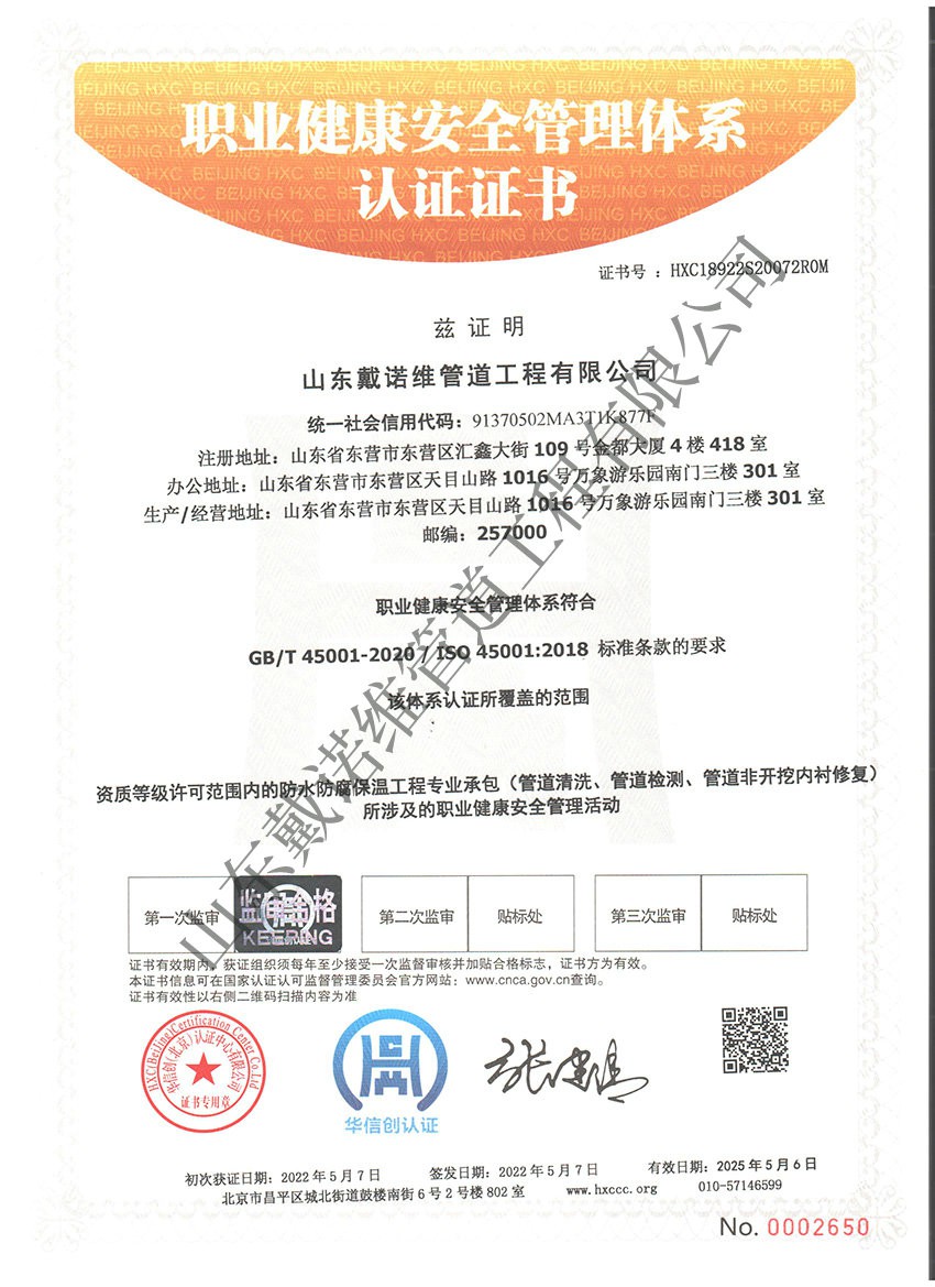 山東戴諾維管道工程有限公司專業從事管道非開挖內襯修復,管道內襯PE管修復,管道內襯不銹鋼修復等,服務質量好